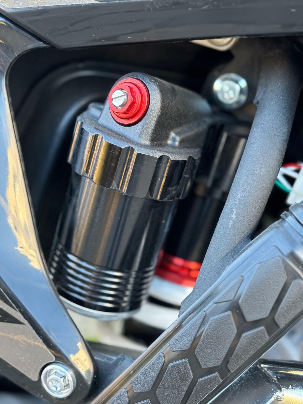 ✅Ajuste da suspensão traseira : Pré carga com compressão e retorno